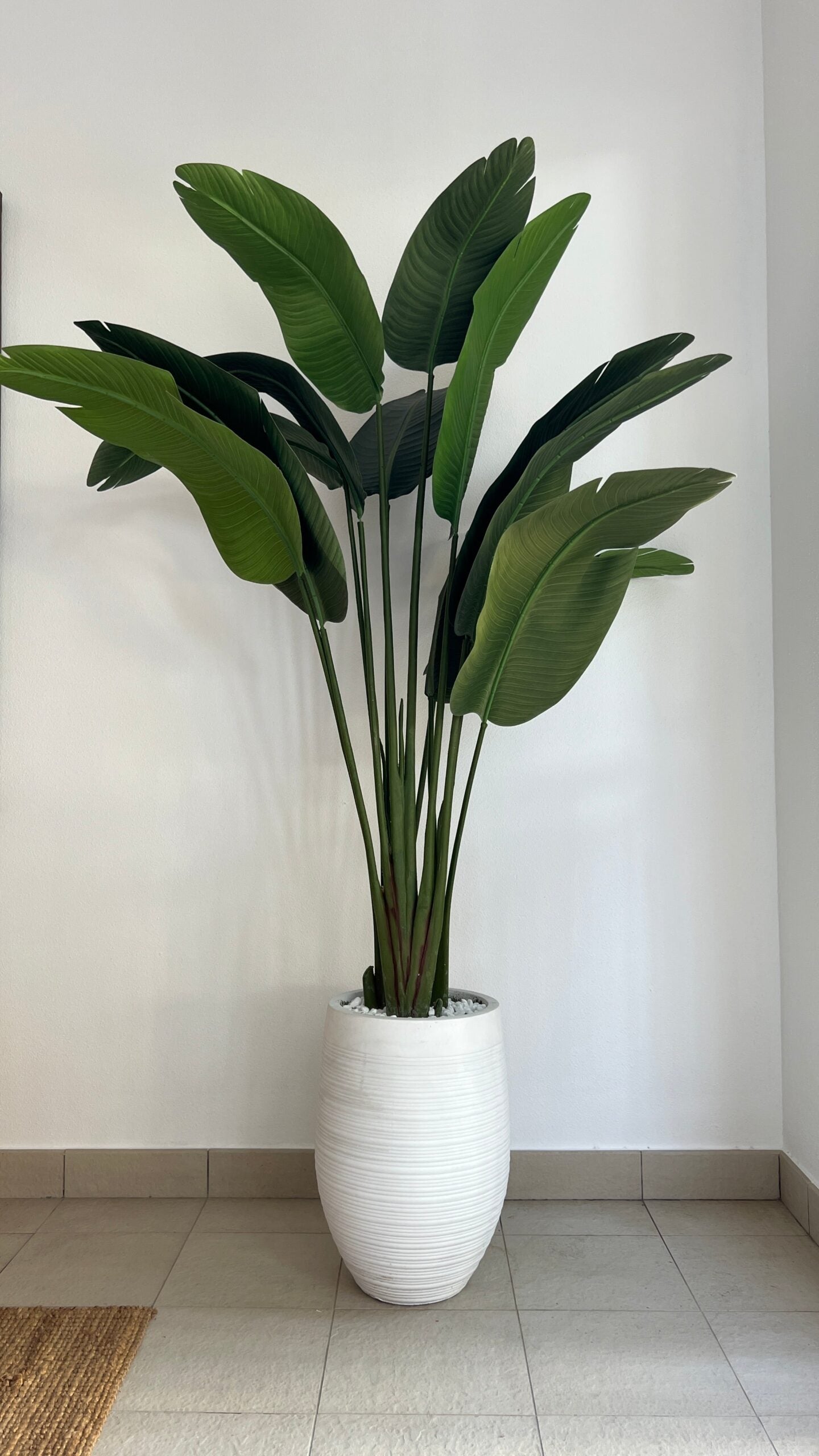 Turn your home into a tropical paradise with this lifelike artificial banana tree. This tree allows you to enjoy the look of an indoor tree with none of the maintenance. It comes fully assembled and ready to decorate your room - simply bend out the branches and place it in a ceramic pot to complete the look.