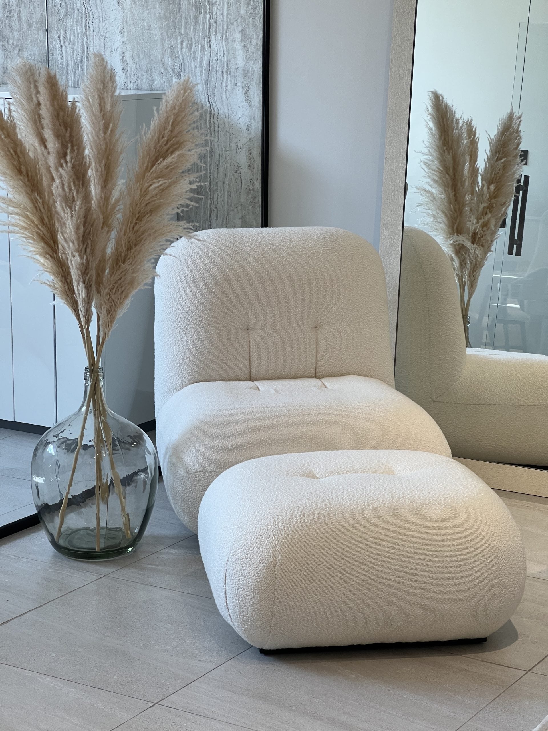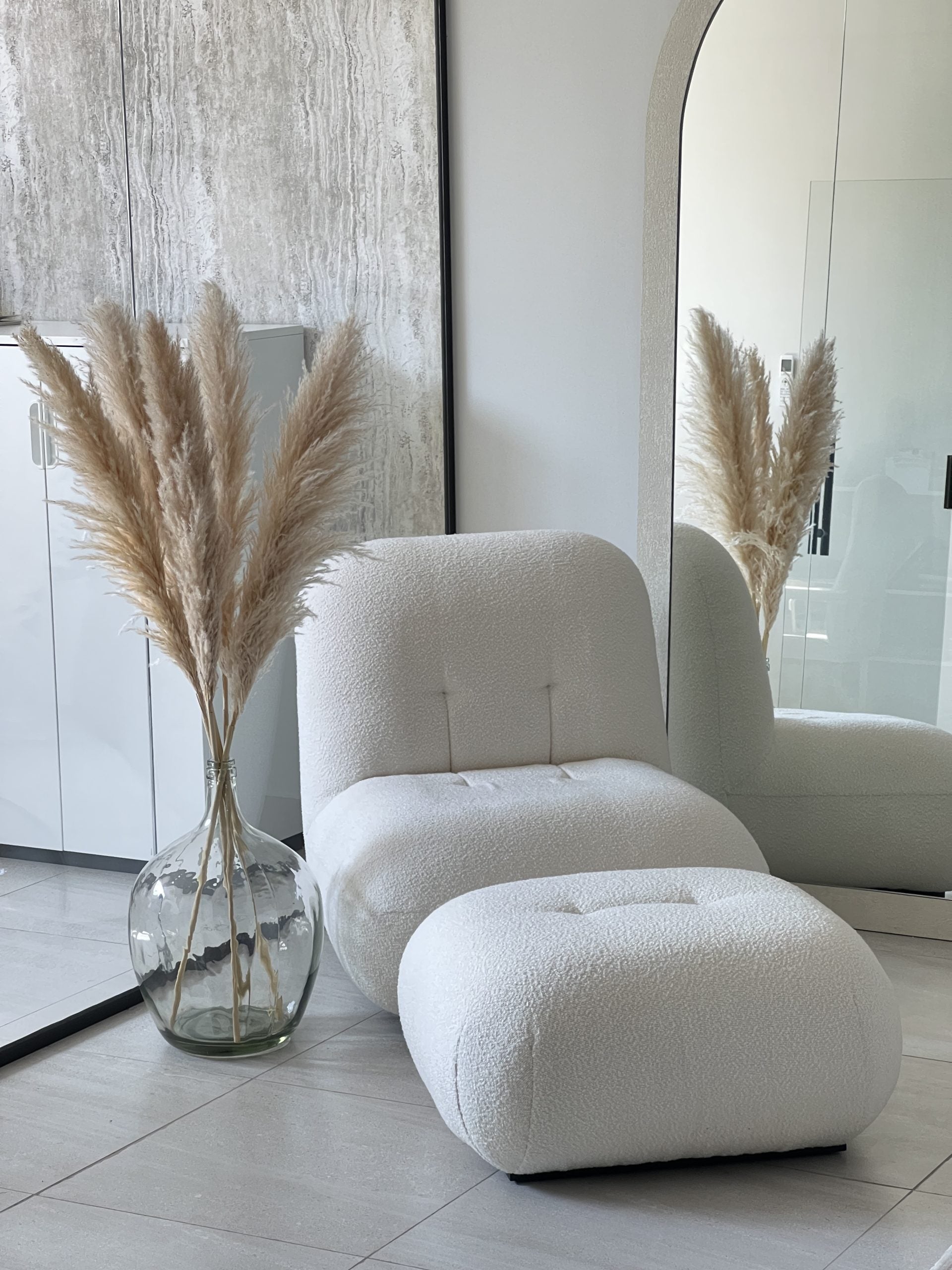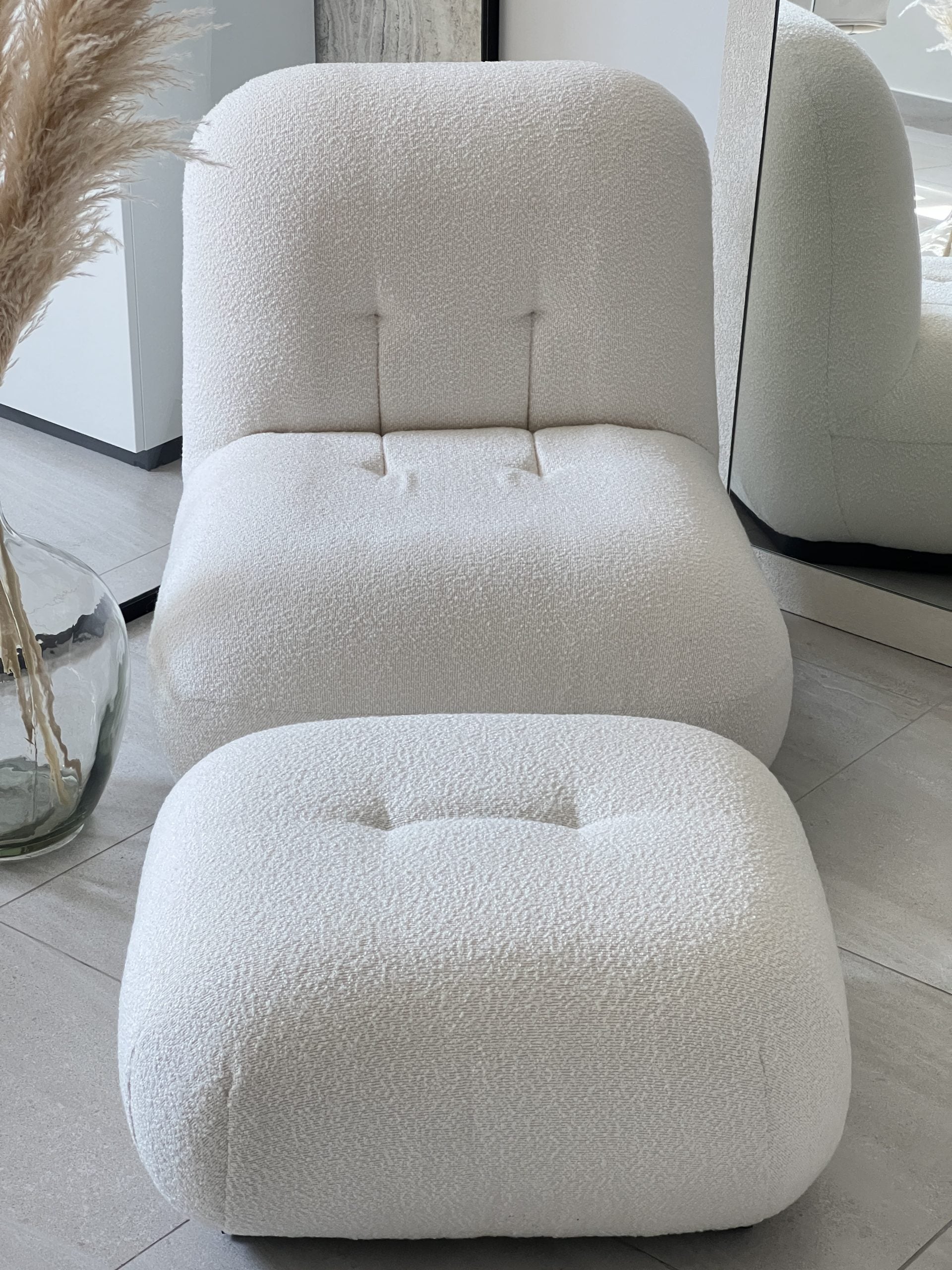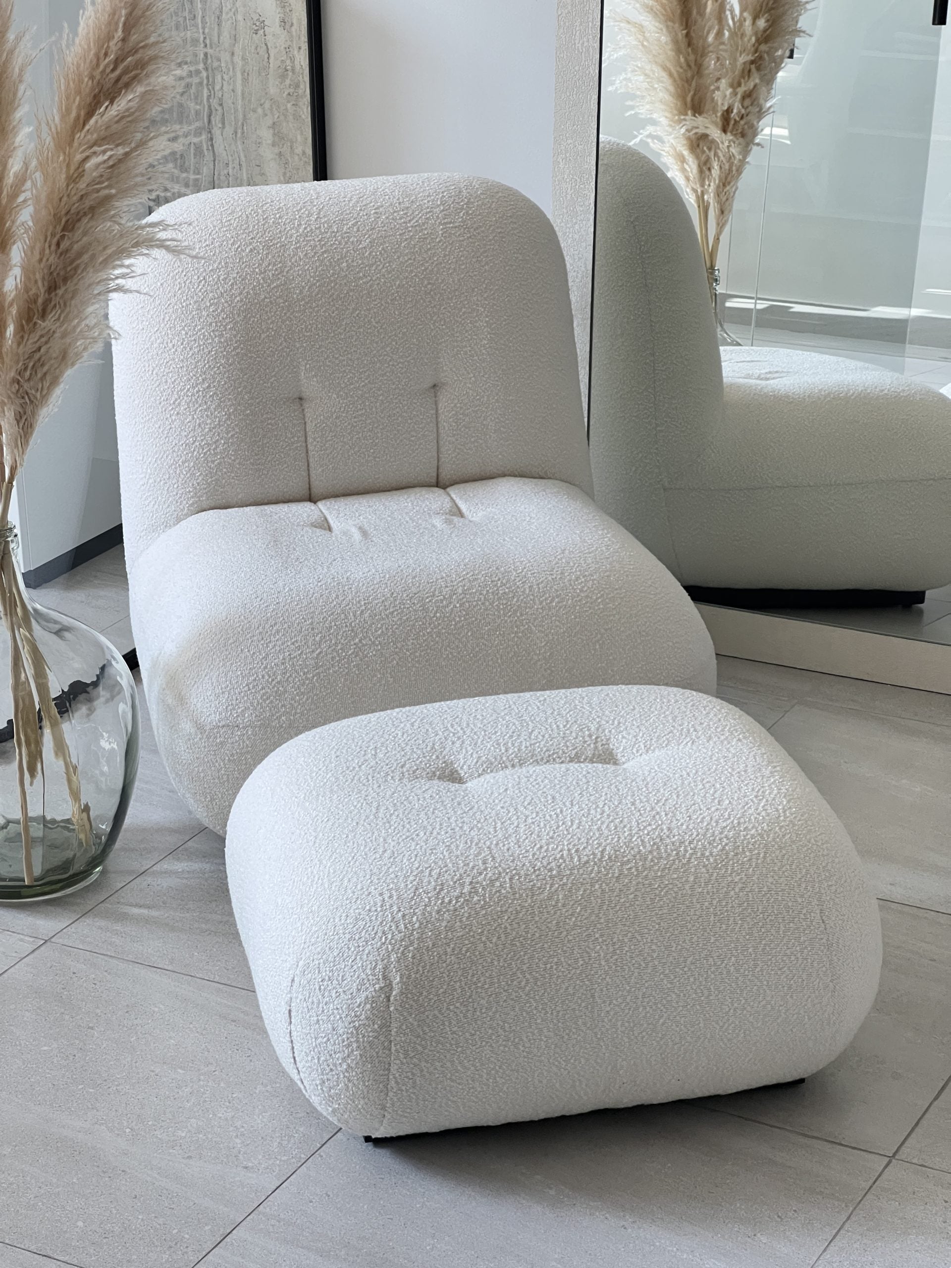 Our Zita Bouclé footstool is made from the cosiest bouclé fabric and also available in cream to match our gorgeous Zita Bouclé Chair.